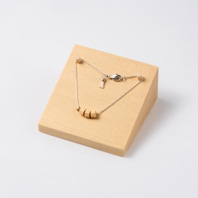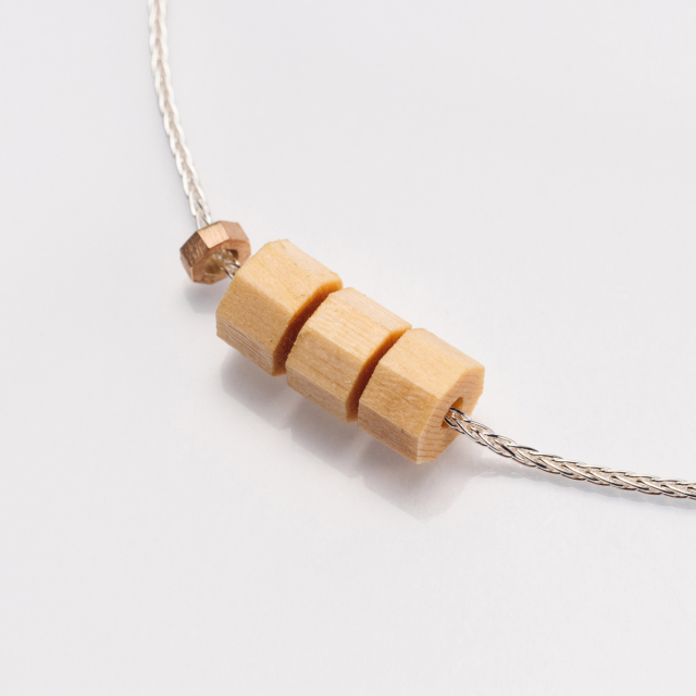 縁起のいい八角形の小さな木曽桧ビーズを3つ並べて。