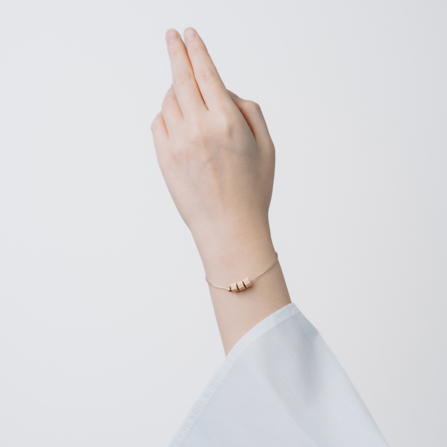 10金イエローゴールド、木曽桧、水晶と火地水、自然の3大エレメントを網羅したブレスレット。