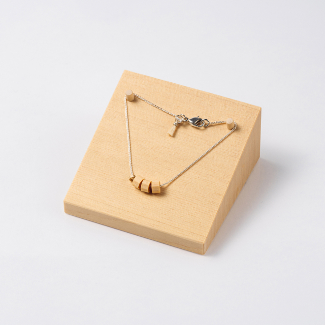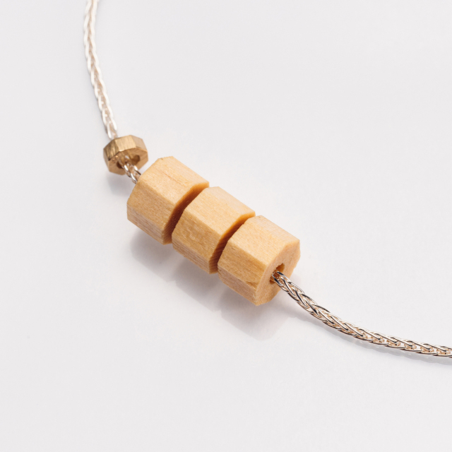 縁起のいい八角形の小さな木曽桧ビーズを3つ並べて。